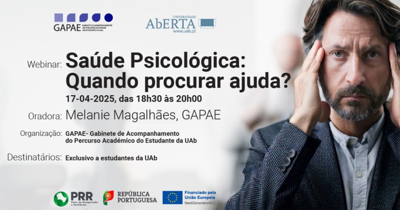Neste sentido, o GAPAE- Gabinete de Acompanhamento do Percurso Académico do Estudante da Universidade Aberta promove o webinar “Procrastinação: estratégias de prevenção para o Ensino Superior”, que se realiza no dia 10 de abril de 2025 pelas 18h30, sendo dinamizado pelo Professor Doutor Joaquim Gronita, psicólogo e docente da UAb.